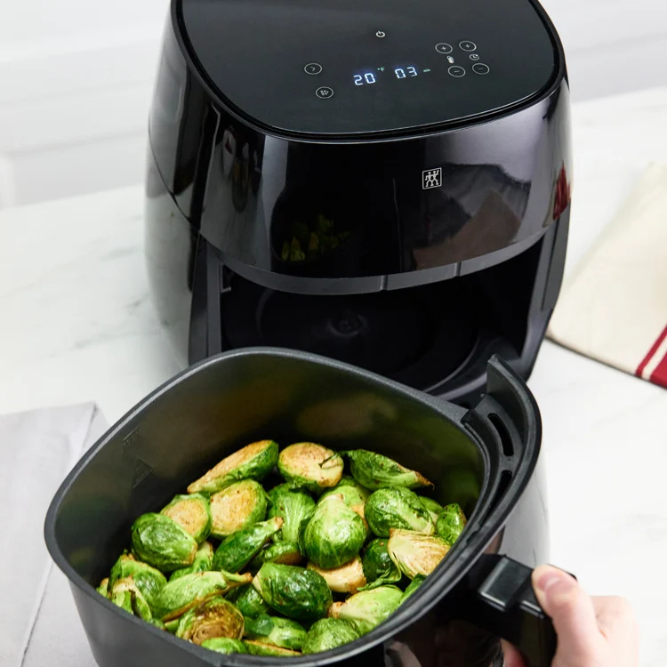 The ZWILLING Air Fryer delivers power, flavor, and efficiency to small apartments and busy households so you can do it all in the kitchen without having to turn on your oven. Bake, roast, fry and more with this compact powerhouse that delivers countertop convenience with a sleek nonstick construction and smart design. Simple yet speedy, it delivers control and ease when baking, roasting, and frying under a time crunch.